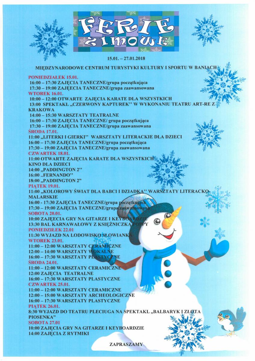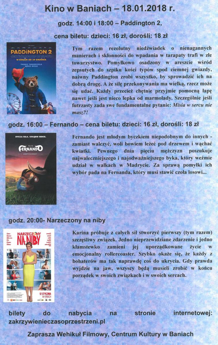 05 stycznia 2018 r. w Centrum Kultury w Baniach odbył się XV Przegląd Jasełek. W Przeglądzie zaprezentowały się dwie grupy dzieci z Przedszkola w Baniach, ,,Teatr na patyku'' z Centrum Kultury w Baniach. Na jasełkowej scenie licznie stawili się przedstawiciele niebios, jak i piekieł wraz z dobrze znanymi nam bohaterami biblijnymi. Gra młodych aktorów była pełna otwartości, szczerości, prostoty i ciepła. Każda grupa starała się w swoich Jasełkach w sposób subtelny i oryginalny zaprezentować istotę i ponadczasowe piękno Bożego Narodzenia.