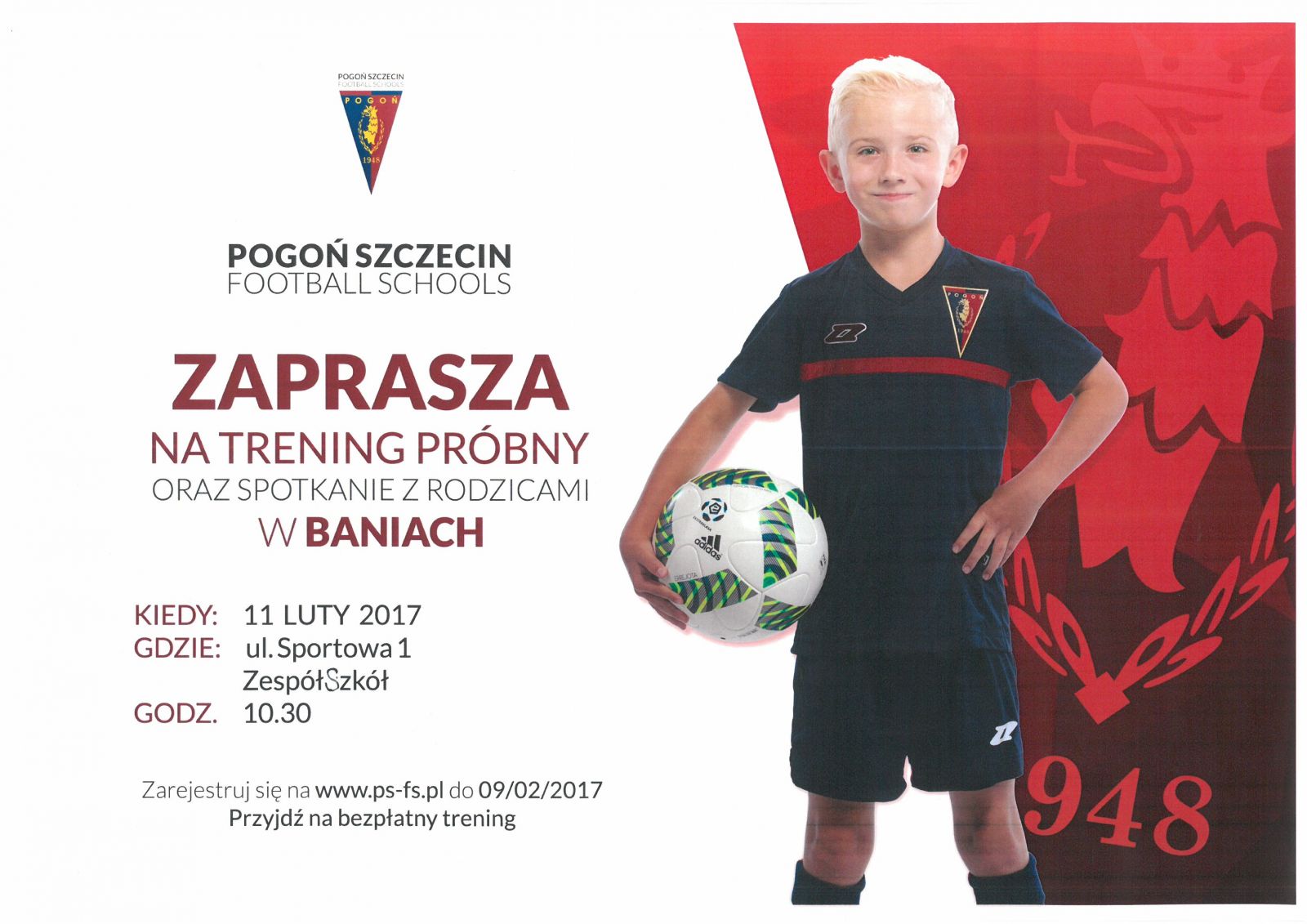 Dnia 02.02.2017 r. o godz. 17:00 w Międzynarodowym Centrum Turystyki, Kultury i Sportu w Baniach odbędzie się spotkanie z przedstawicielem Pogoni Szczecin FOTBALL SCHOLS.