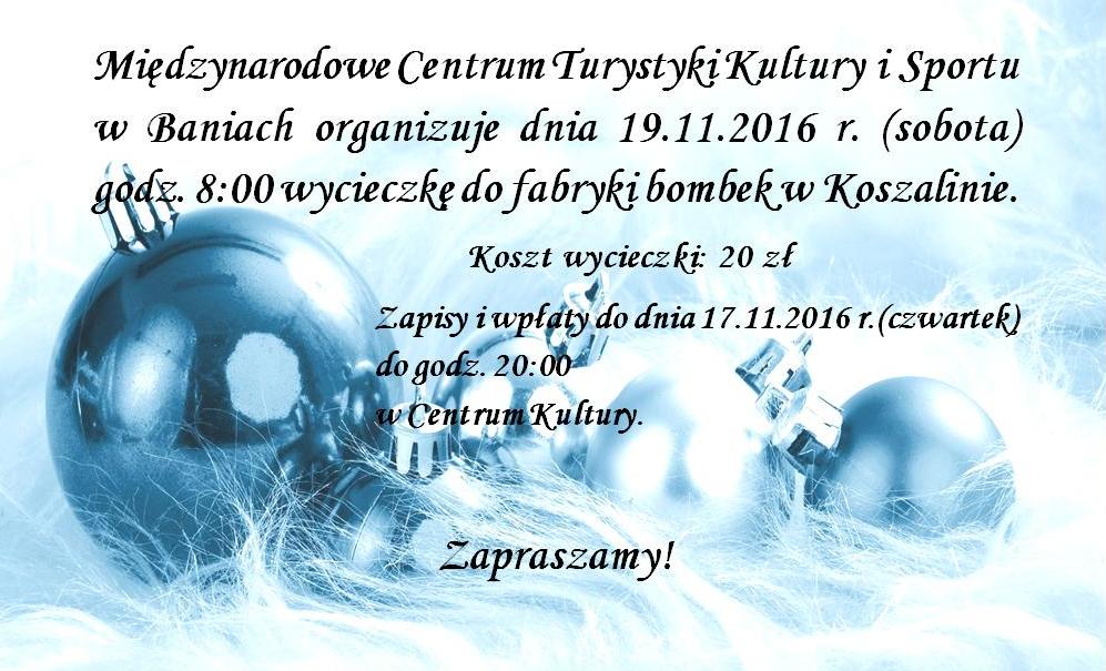 W piątek odbył się koncert zespołu Trio Jazz. Klimat koncertu, profesjonalne wykonanie jazzowych standardów pozostanie długo w pamięci publiczności. W każdą sobotę odbywają się warsztaty ceramiczne dla dzieci i dorosłych. Na Finale XII Wojewódzkiego Przeglądu Piosenki Polskiej „Skolwińskie Przeboje” Centrum Kultury w Baniach reprezentowała Nikola Dobrowolska.