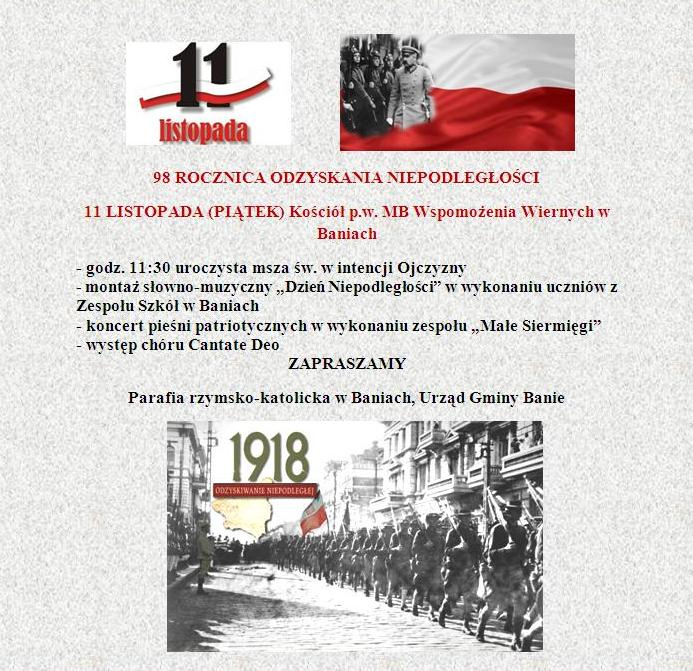 11.Listopada w sali widowiskowej MCTKiS odbył się montaż słowno-muzyczny w wykonaniu Teatru Na Patyku. Następnie dla widzów dorosłych został wyświetlony film pt.:"Hiszpanka" nawiązujący do Powstania Wielkopolskiego w 1918 r., a młodsi widzowie zostali zaproszeni do sali na parterze, gdzie obejrzeli film pt.:"Czarownica" . W sobotę 12. listopada Centrum Kultury zorganizowało wyjazd dla Mieszkańców Gminy na ścianki wspinaczkowe do Trango Towers w Szczecinie. Efekty powyższych wydarzeń w fotogalerii..