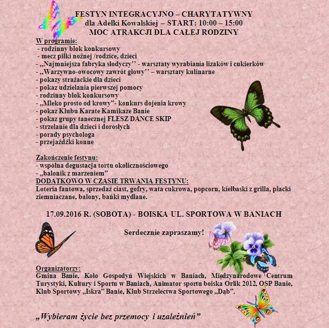 W dniach 9-11 września 2016 r. odbyły się Targi Rolne "AGRO POMERANIA 2016". Podczas targów można było obejrzeć bogate oferty handlowe producentów maszyn rolniczych, przetwórstwa rolno-przemysłowego oraz sektora budowlanego. Odbyły się również prezentację oraz pokazy zwierząt hodowlanych, Regionalna Wystawa Bydła Mlecznego, ptaków hodowlanych ozdobnych, królików, gołębi, koni. W tym roku Gmina Banie również posiadała swoje stoisko, na którym promowano naszą gminę rozdając foldery turystyczne, gadżety promocyjne oraz udzielając informacji na temat m.in.: działek nad jeziorem Dłużec przeznaczonych do sprzedaży.