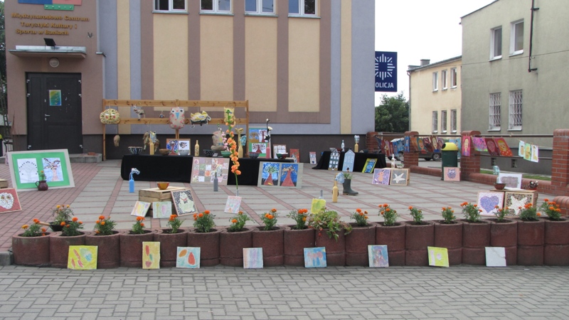 Na placu przy Centrum Kultury w Baniach zorganizowano wystawę prac uczestników zajęć w pracowni plastycznej, zajęć wakacyjnych.