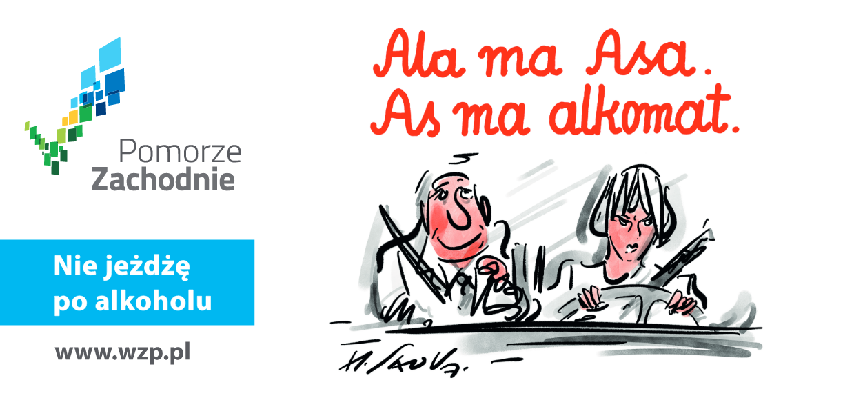 Billboardy z rysunkiem autorstwa Henryka Sawki promują tegoroczną kampanię na rzecz trzeźwości „Nie jeżdżę po alkoholu”, realizowaną przez Urząd Marszałkowski Województwa Zachodniopomorskiego w partnerstwie z Wojewódzkim Ośrodkiem Ruchu Drogowego w Szczecinie. Zadaniem tegorocznej akcji informacyjnej jest przypominanie, że jazda pod wpływem alkoholu, jak i innych środków psychoaktywnych, naraża na śmiertelne niebezpieczeństwo innych użytkowników ruchu drogowego. Statystyki pokazują, że kierowcy wciąż lekceważą zagrożenia związane z jazdą pod wpływem alkoholu. Prawdopodobieństwo wypadku kierowcy, u którego stężenie alkoholu we krwi wynosi ponad 1,6 promila, jest 2,7 razy większe niż w przypadku kierowcy trzeźwego. W społeczeństwie istnieje wiele błędnych i szkodliwych przekonań na temat alkoholu. Kierowcy zapominają, że każda ilość spożytego alkoholu wpływa na funkcjonowanie organizmu człowieka. Na potrzeby kampanii zakupiono 20 000 szt. jednorazowych alkotestów z logo kampanii które będą dystrybuowane m.in. przez Policję. Kampania „Nie jeżdżę po alkoholu” trwa od lipca do listopada 2016 r.