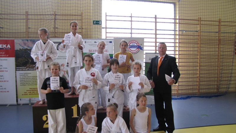 W niedzielę, 12 czerwca w Publicznej Szkole Podstawowej w Mierzynie odbył się III Otwarty Turniej Karate Funakoshi-Do. Młodzi karatecy z zaangażowaniem walczyli o puchary i medale. Organizatorem turnieju był Uczniowski Klub Sportowy Funakoshi-Do Szczecin. Klub Kamikaze Banie w składzie kilkunastu zawodników zdobył łącznie 21 medali a w klasyfikacji drużynowej jako klub zajęli 2 miejsce. Dodatkowo Mateusz został najlepszym zawodnikiem turnieju. Gratuluję wszystkim za odwagę.