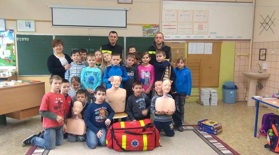 W pierwszy dzień wiosny uczniów klasy 2 b odwiedzili ratownicy medyczni z Ochotniczej Straży Pożarnej w Baniach. Strażacy przeprowadzili instruktarz masażu serca, wskazali sposoby powiadamiania o wypadku odpowiednich służb. Poinformowali, jak należy zachować się w razie pożaru, czy ataku psa.