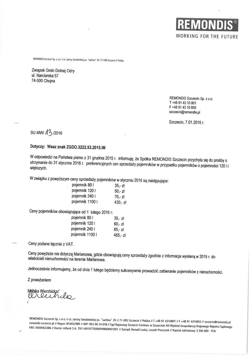 OD 20 STYCZNIA 2016 r. ZABIERANE BĘDĄ NIEWYKUPIONE POJEMNIKI NA ODPADY ZMIESZANE!