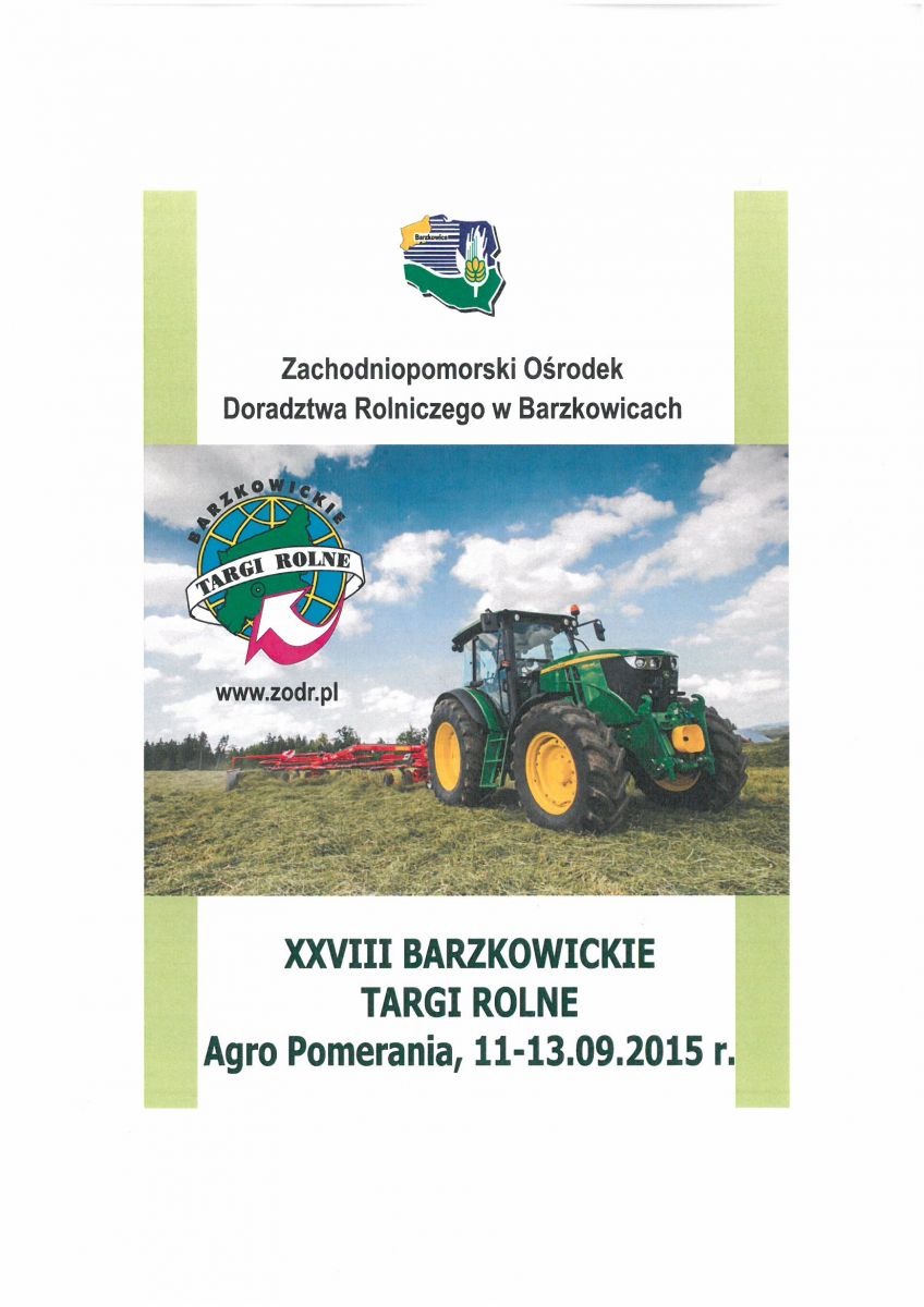 Corocznie w drugi wrześniowy weekend w Barzkowicach odbywają się Targi Rolne AGRO POMERANIA 2015, które w tym roku przypadają w dniach 11-13 września.