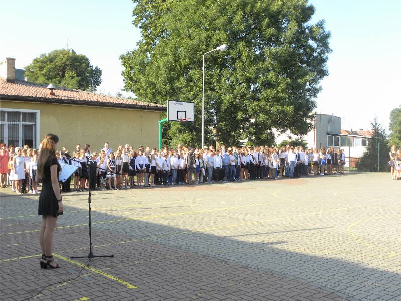 Pierwszy dzwonek rozpoczynający nowy rok szkolny 2015/2016 zabrzmiał o godzinie 9.00. Pan dyrektor Arkadiusz Augustyniak serdecznie powitał wszystkich przybyłych uczniów, rodziców, nauczycieli, a także przybyłych gości. Szczególne gorąco powitano nowo przybyłych pierwszoklasistów, którzy rozpoczynają swą przygodę z nauką.