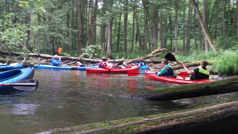 Festyn na Ziemi Bańskiej nie mógł się odbyć bez spływu kajakowego. Również w tym roku KONTRA Banie zorganizowała mieszkańcom gminy kajakową atrakcje. Piętnastu śmiałków pokonało 26 km krętej i pełnej przeszkód rzeki. Pogoda i tym razem nam dopisała. Obeszło się bez deszczu, jednak kilku uczestników mogło pochwalić się mokrym ubraniem, zaliczając wpadki do wody. W połowie trasy tradycyjnie rozpaliliśmy ognisko. Późnym popołudniem wyczerpani, ale z uśmiechami na twarzy zakończyliśmy kajakową przygodę.
