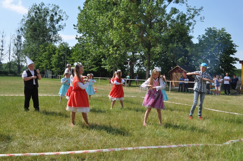 Obchody Dnia Dziecka zorganizowaliśmy w sobotę 06.06.2015r na boisku wiejskim. „ Harcówka Teatr” pod kierunkiem p. Kasi Tworek przywitał wszystkich częścią artystyczną i tańcem. Przybyłe dzieci mogły wziąć udział w różnych konkurencjach sportowych przygotowanych przez p. Dorotę Szulawę. Każdy uczestnik miał szanse na wylosowanie jednej z dwóch przygotowanych niespodzianek.