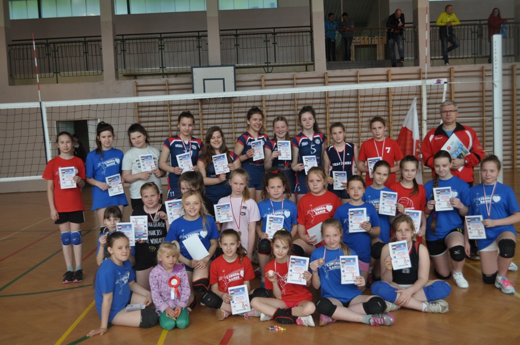 Blisko 30 dziewcząt wzięło udział w Gminnym Turnieju Dwójek Siatkarskich. Zawody rozegrano w dwóch kategoriach - klasy III-IV oraz V-VI szkół podstawowych. Starsze dziewczęta z podstawówki grały w parach z klubowymi koleżankami z I klasy gimnazjum oraz trenerką Izabelą Wołoszyn. Dziesięciominutowe pojedynki obfitowały w wiele ciekawych akcji siatkarskich, w których można było zobaczyć mocne zagrywki, niesamowite obrony i skuteczne ataki :D.